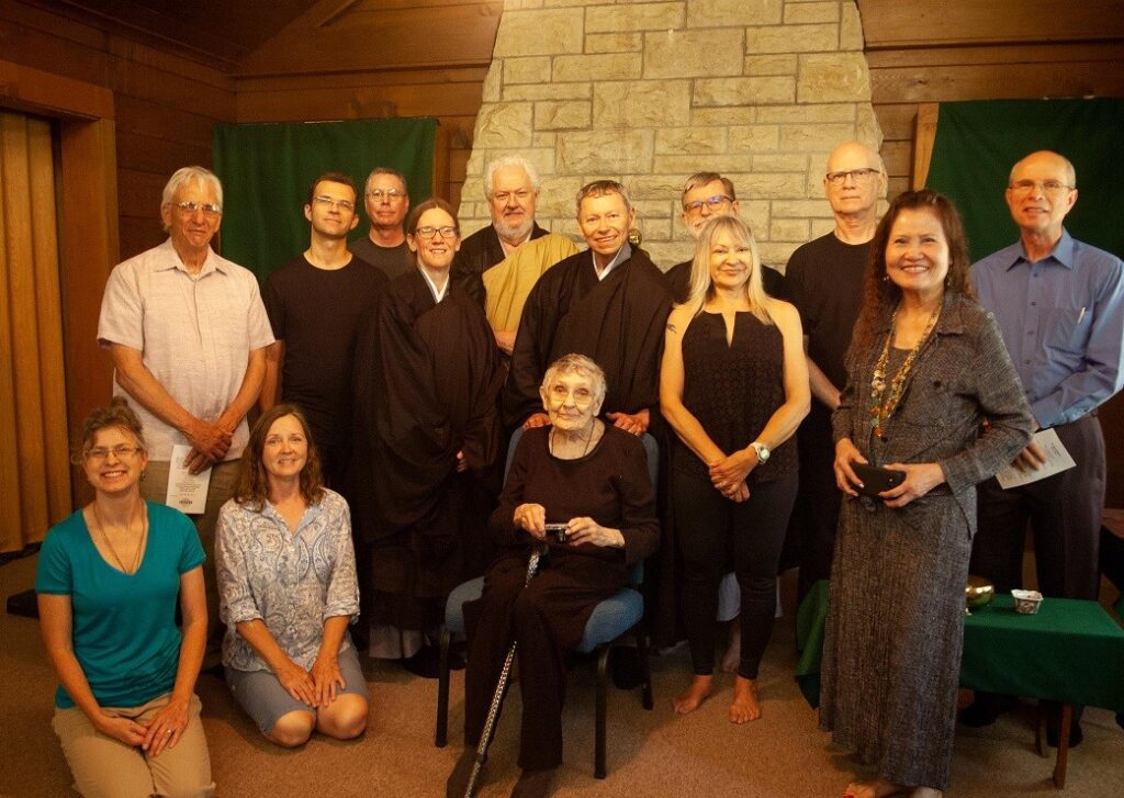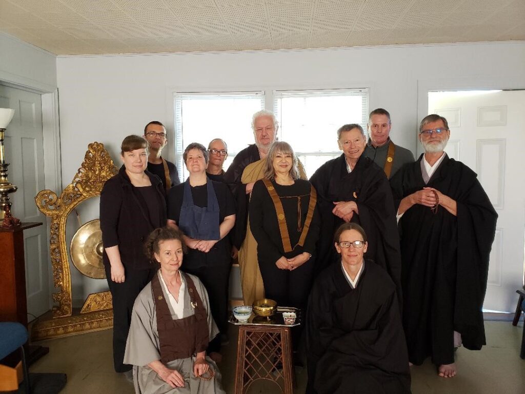 Sunday service includes chanting the Heart Sutra, Universal Transference of Merit and three bows to the Three Treasures of Buddha, Dharma Sangha. We have two sessions of seated meditation separated by 5 minutes of kinhin or walking meditation. When new comers are present the Doan (chant leader) gives soft verbal instructions.